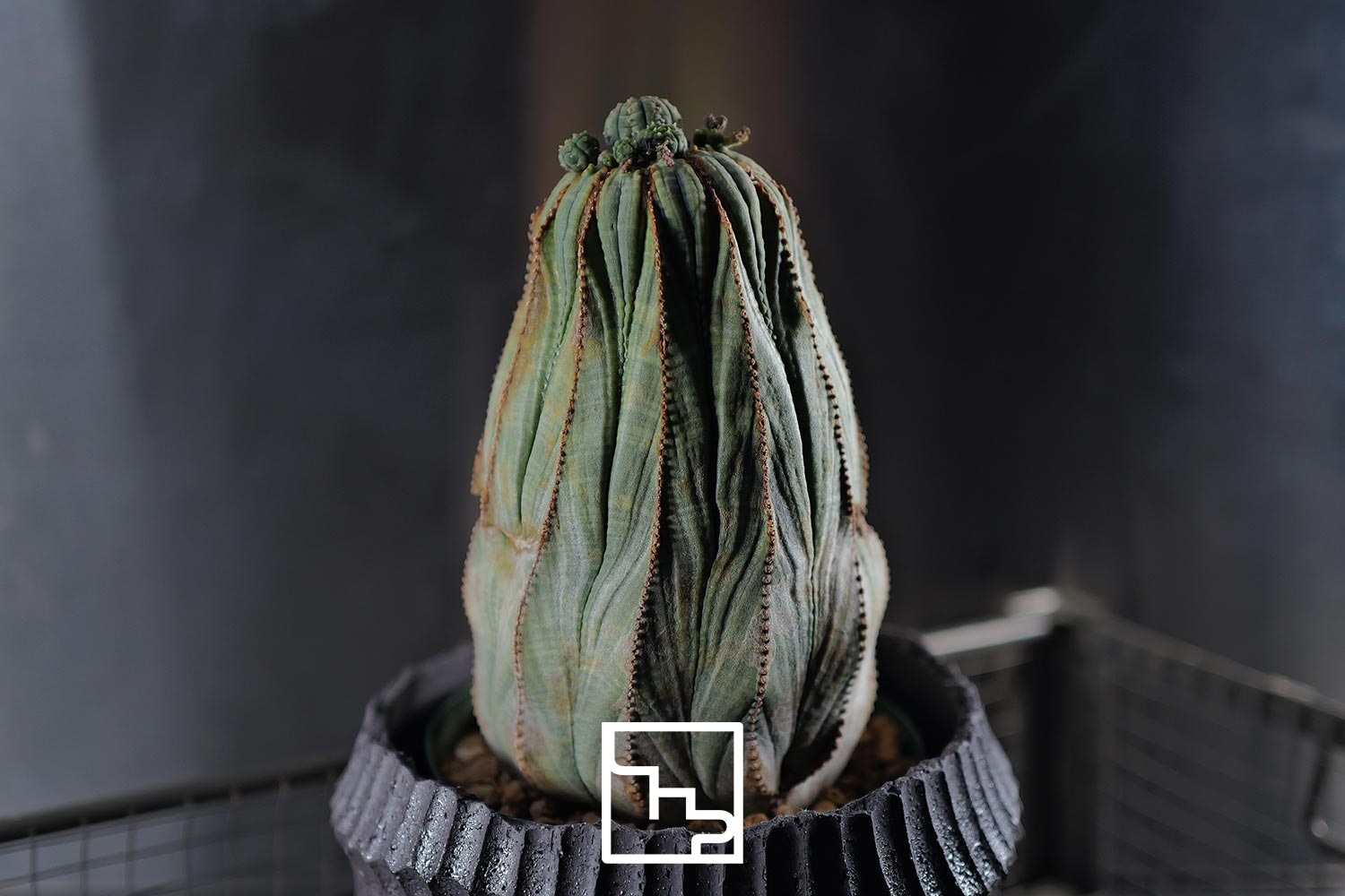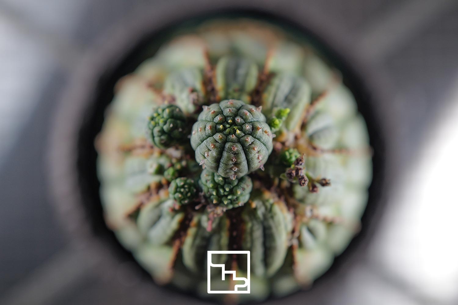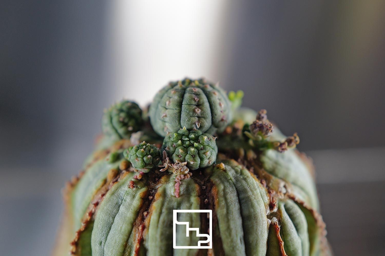 頂端的生長點已受損,從壓扁的部分長出多顆小仔球,形成自然突變的群生造型。