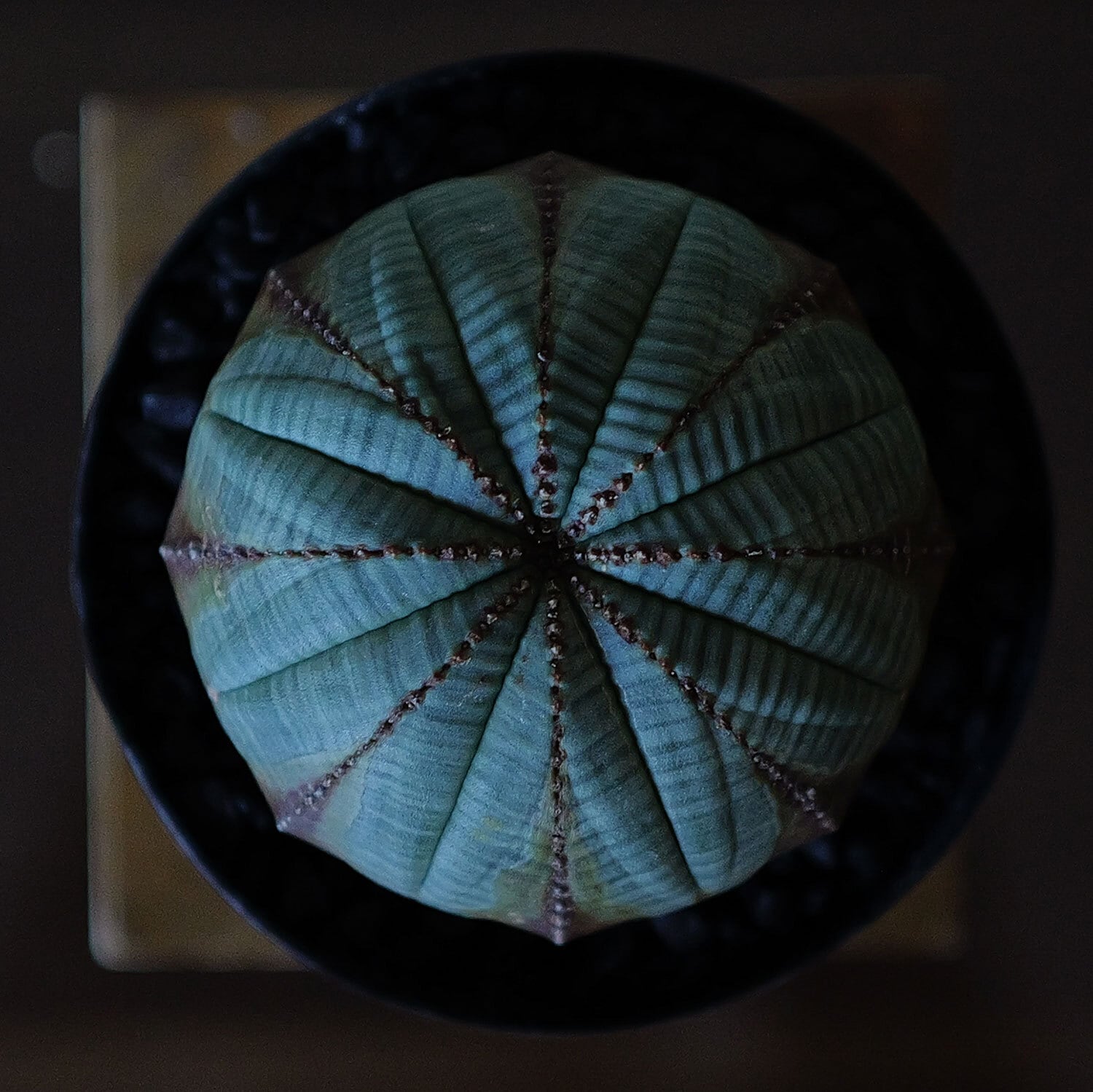 大株 約7cm 美模様 まん丸 扁平 オベサ / 良型 木質化 ユーフォルビア