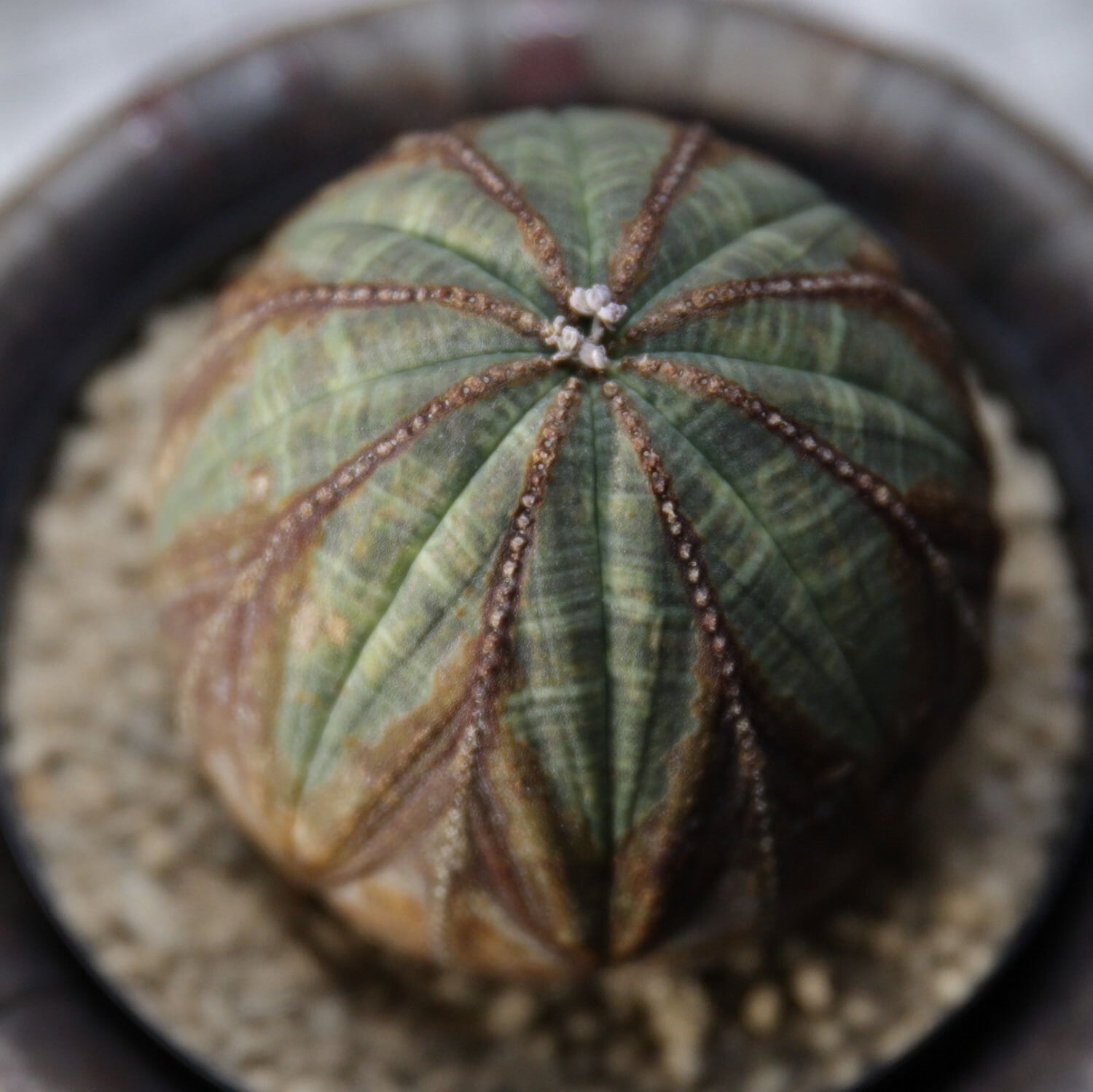 深みのある緑に褐色がにじみ、時間を感じさせる質感です。