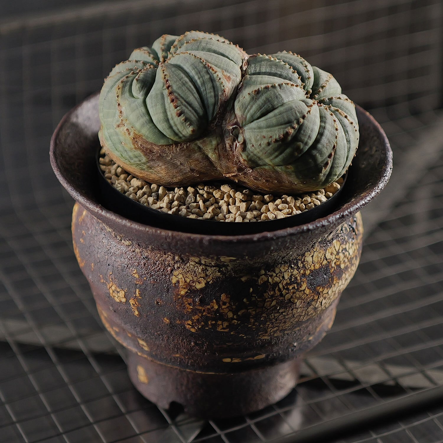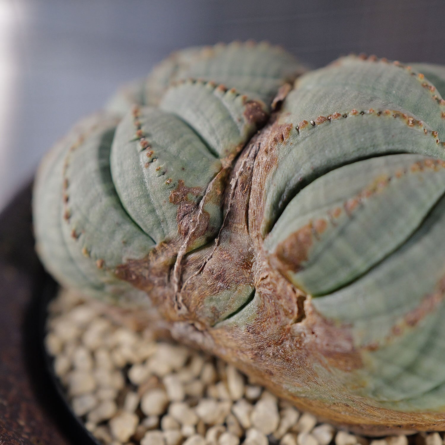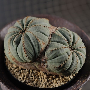 【超厳選株】大株 最大幅約9cm 超扁平 円扇石化 ダブルヘッド オベサ / ユーフォルビア