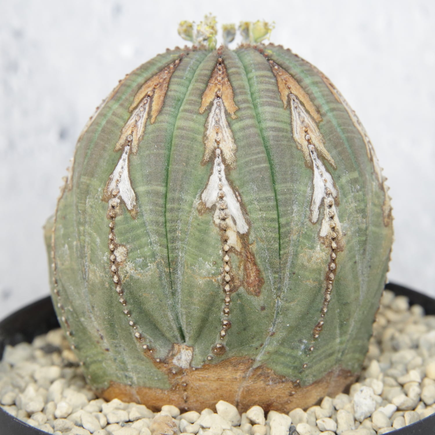 稜に沿って矢じりのような木質化模様が入る珍しいオベサです。