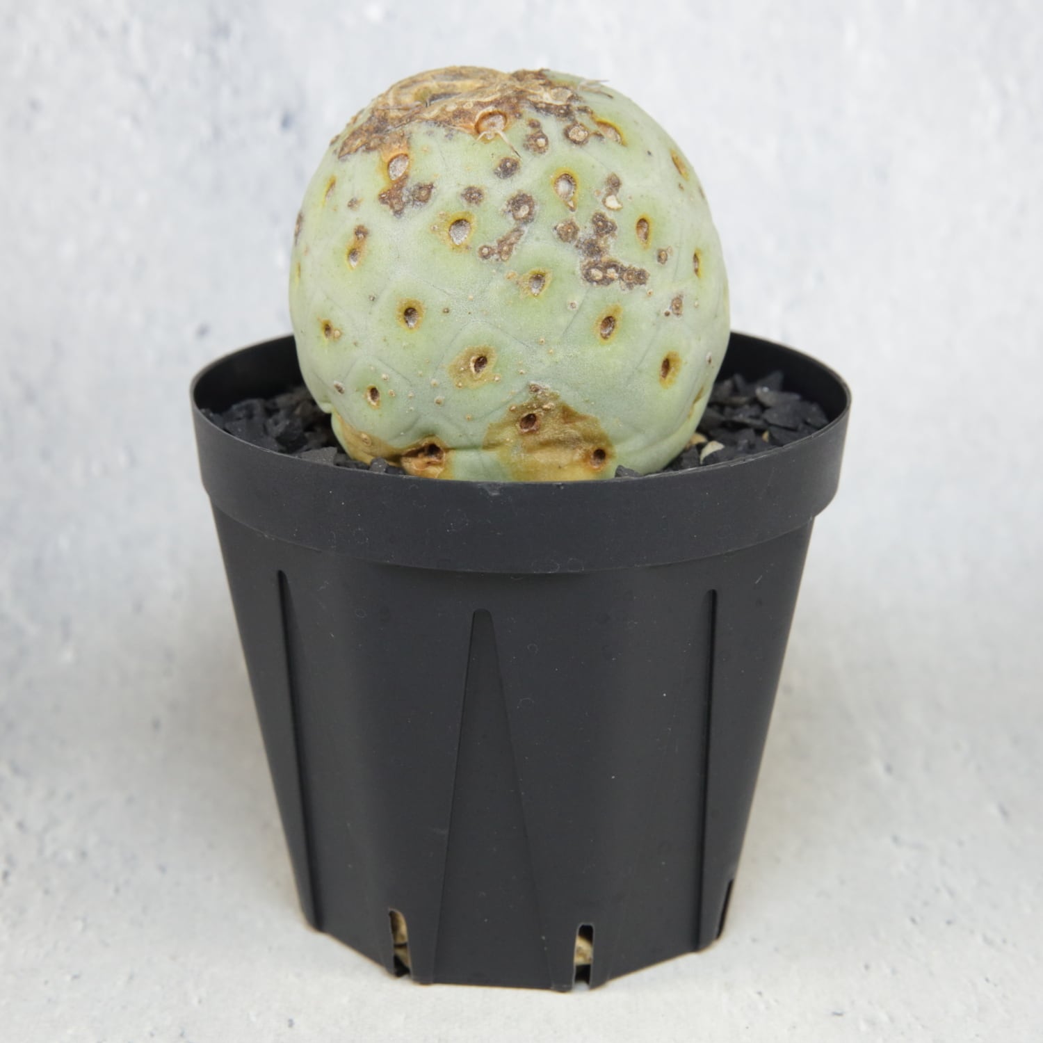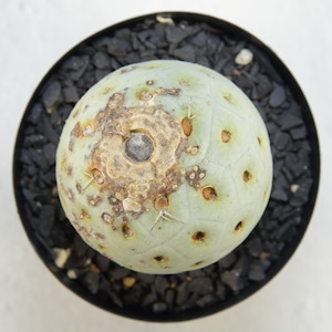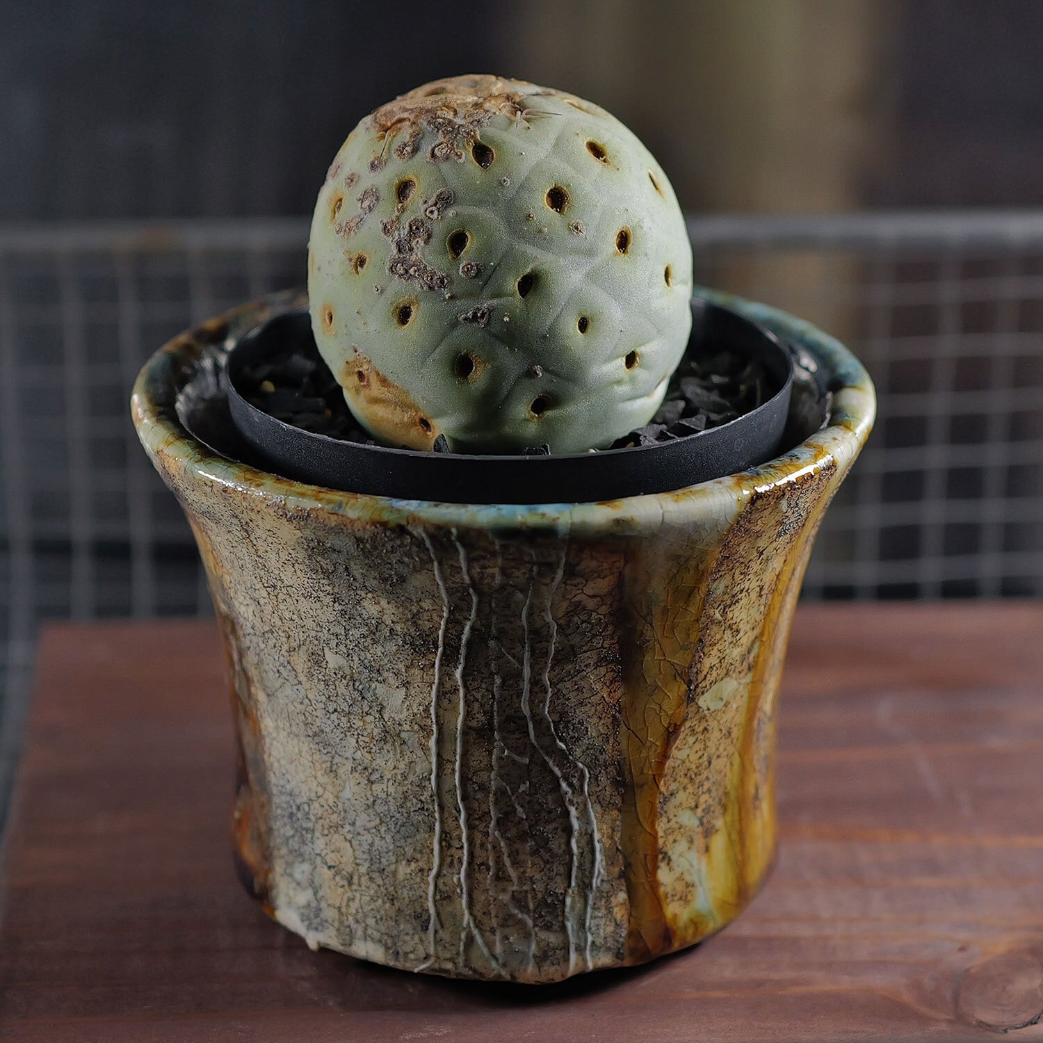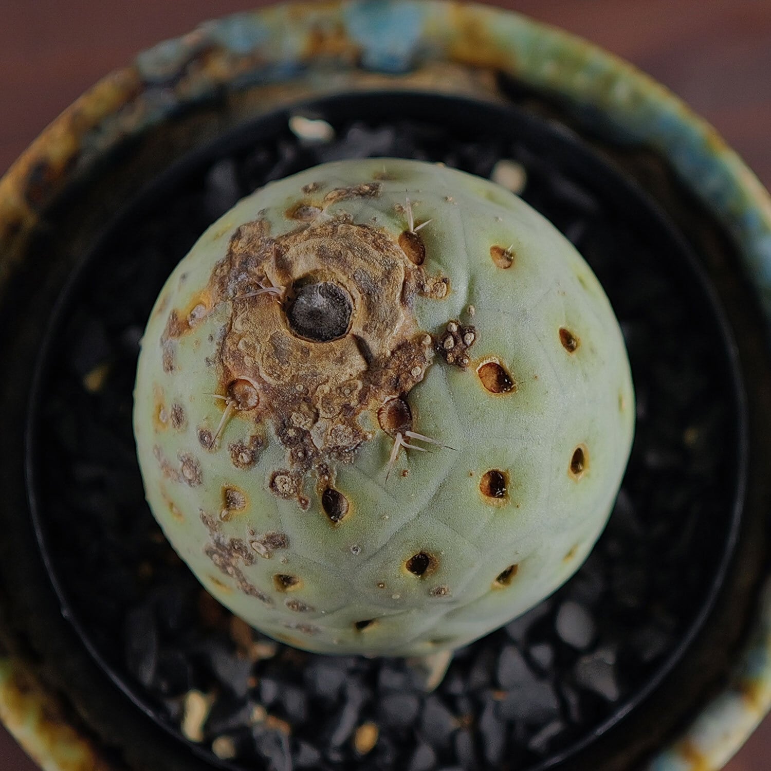 表面に点在する刺座跡やくすんだグレーブルーのトーンが、まるで陶器のような静謐な質感を醸します。