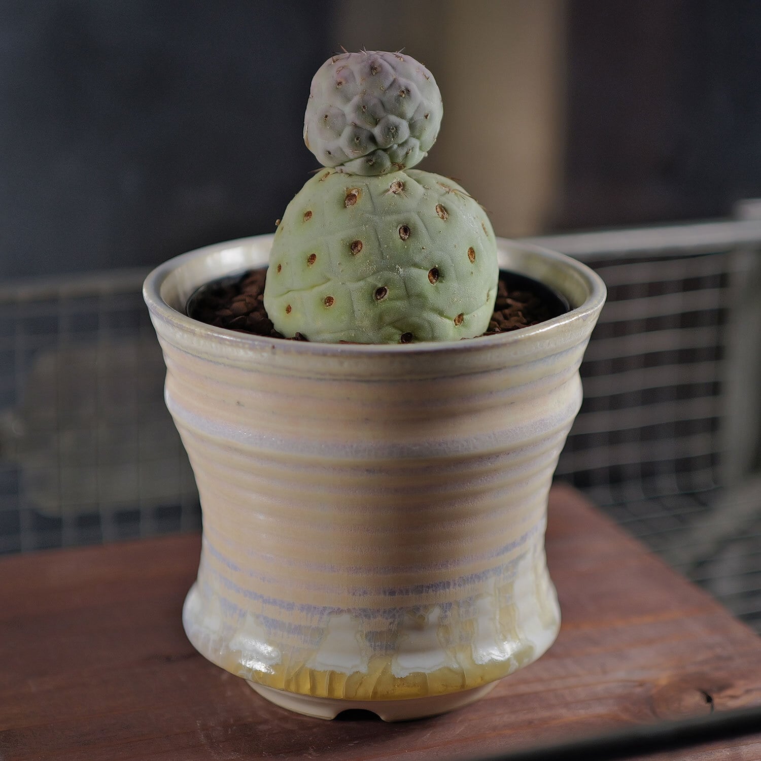 表面に点在する刺座跡やくすんだグレーブルーのトーンが、まるで陶器のような静謐な質感を醸します。