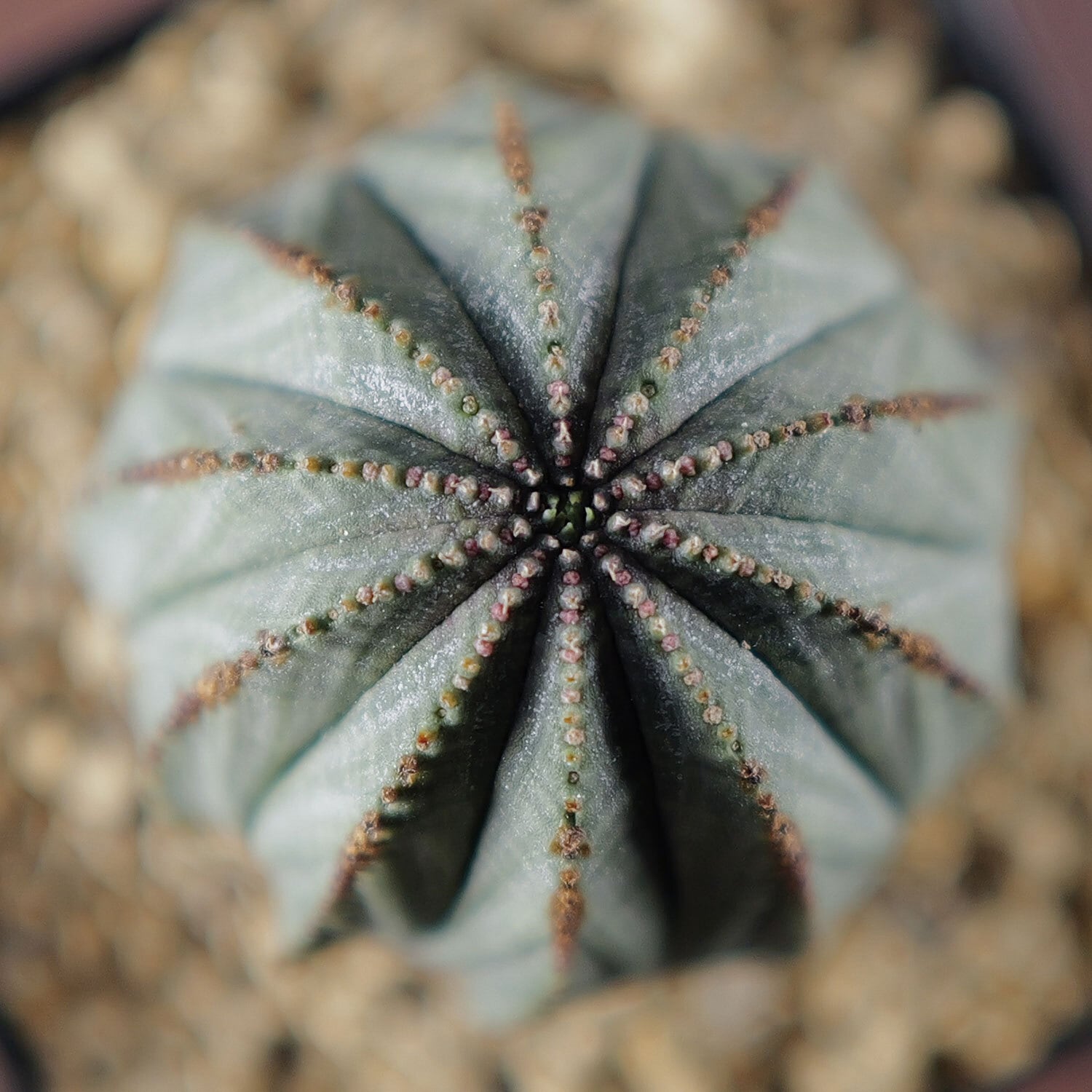 A beginner-friendly Euphorbia obesa recommended as a first plant. Its balanced shape and gentle round form make it easy to care for, while the lightly aged lower part adds character. A perfect entry-level Obesa for new growers.