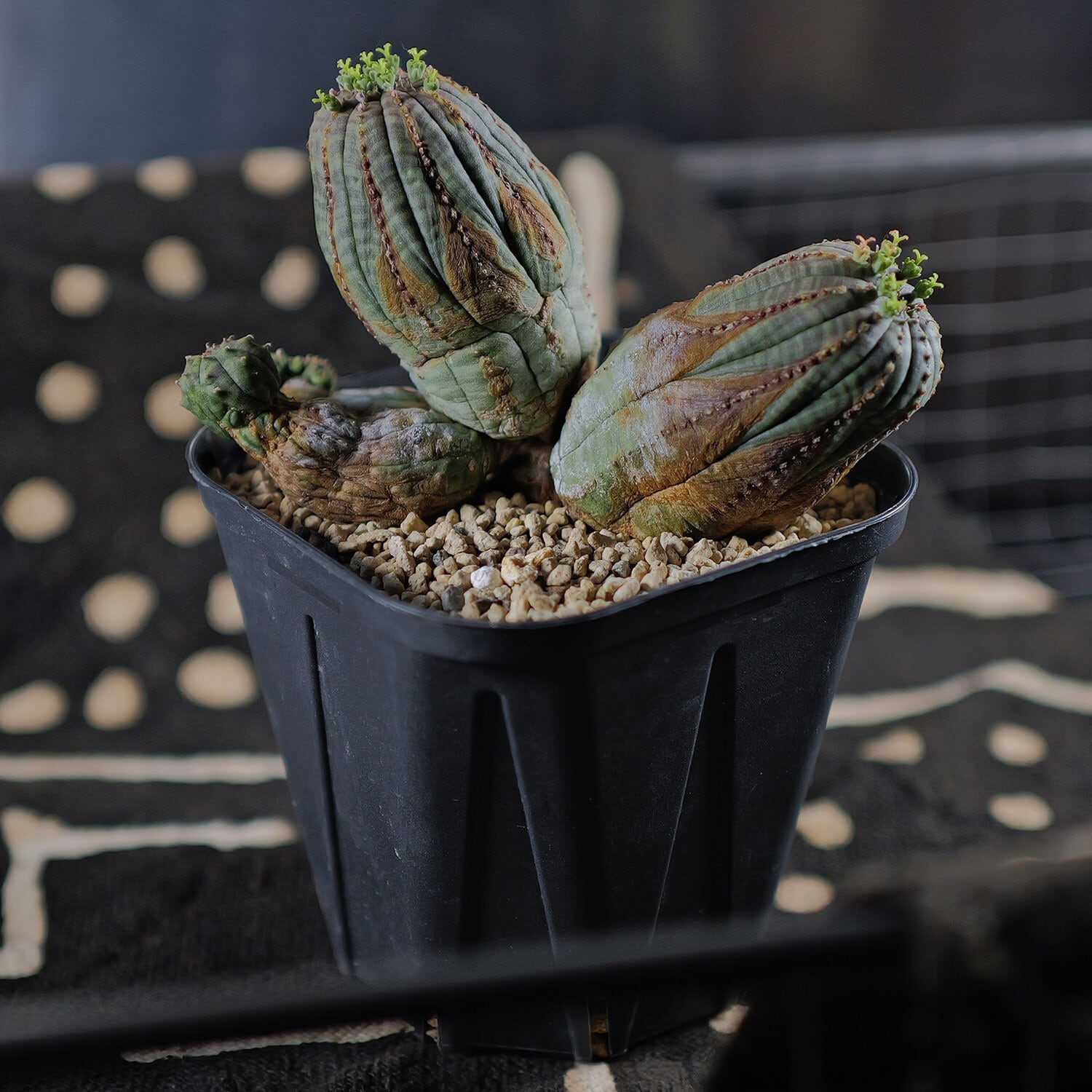 メス株【厳選株】木質化 美模様 四頭 仔吹き綴化 オベサ / ユーフォルビア