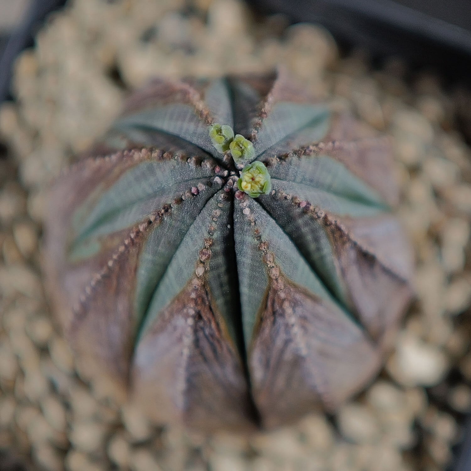 The calm yet distinctive coloration and well-defined ribs give this plant a balanced and elegant presence.