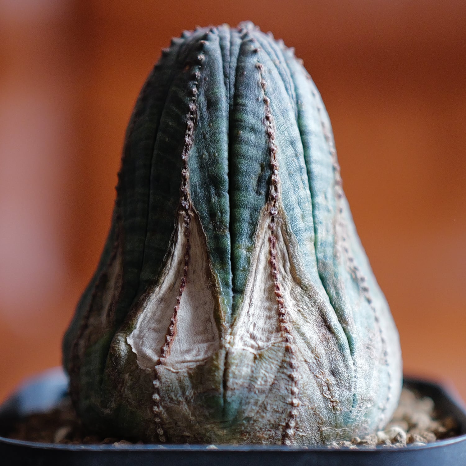 成長点が盛り上がり、山のような起伏を描くマウンテンオベサ。