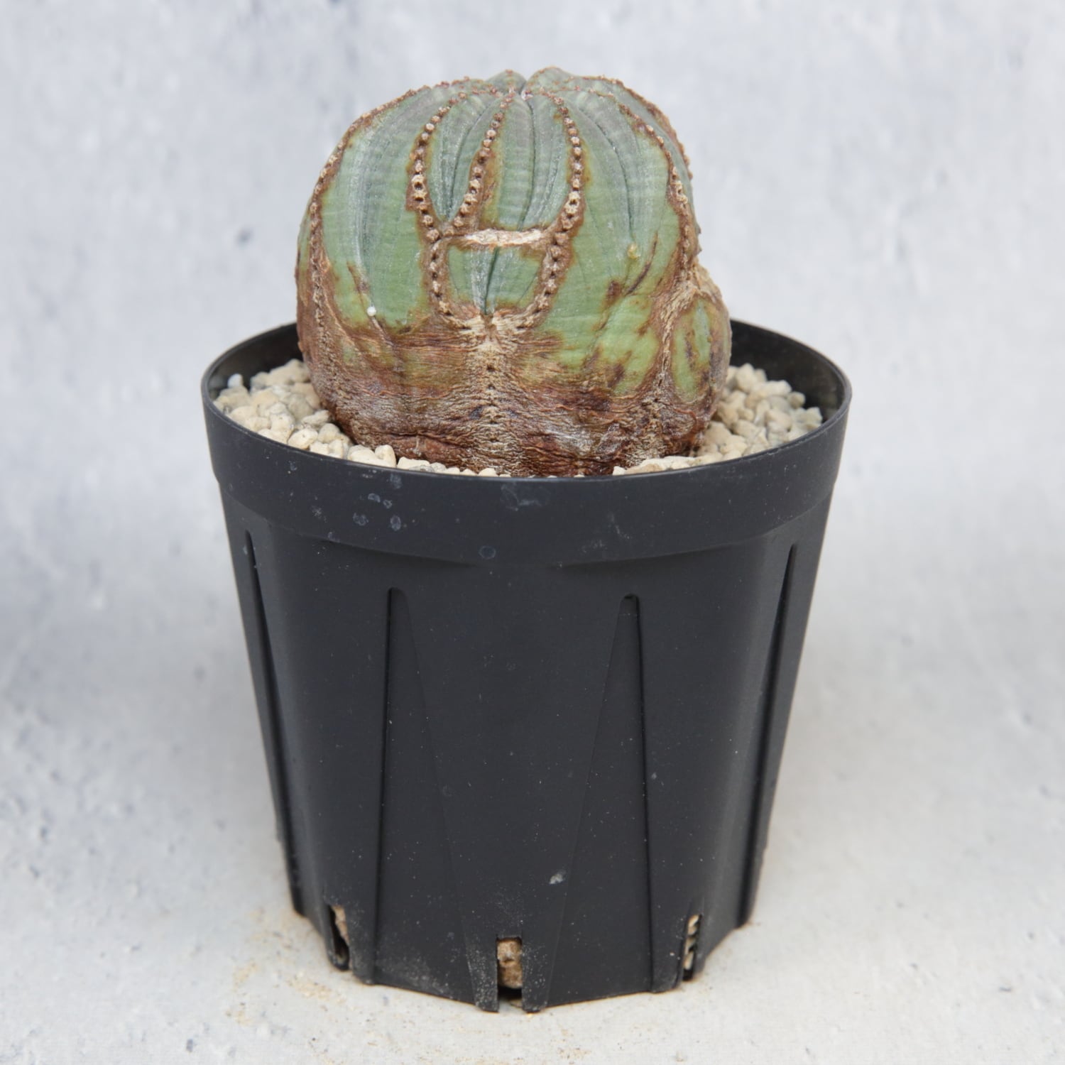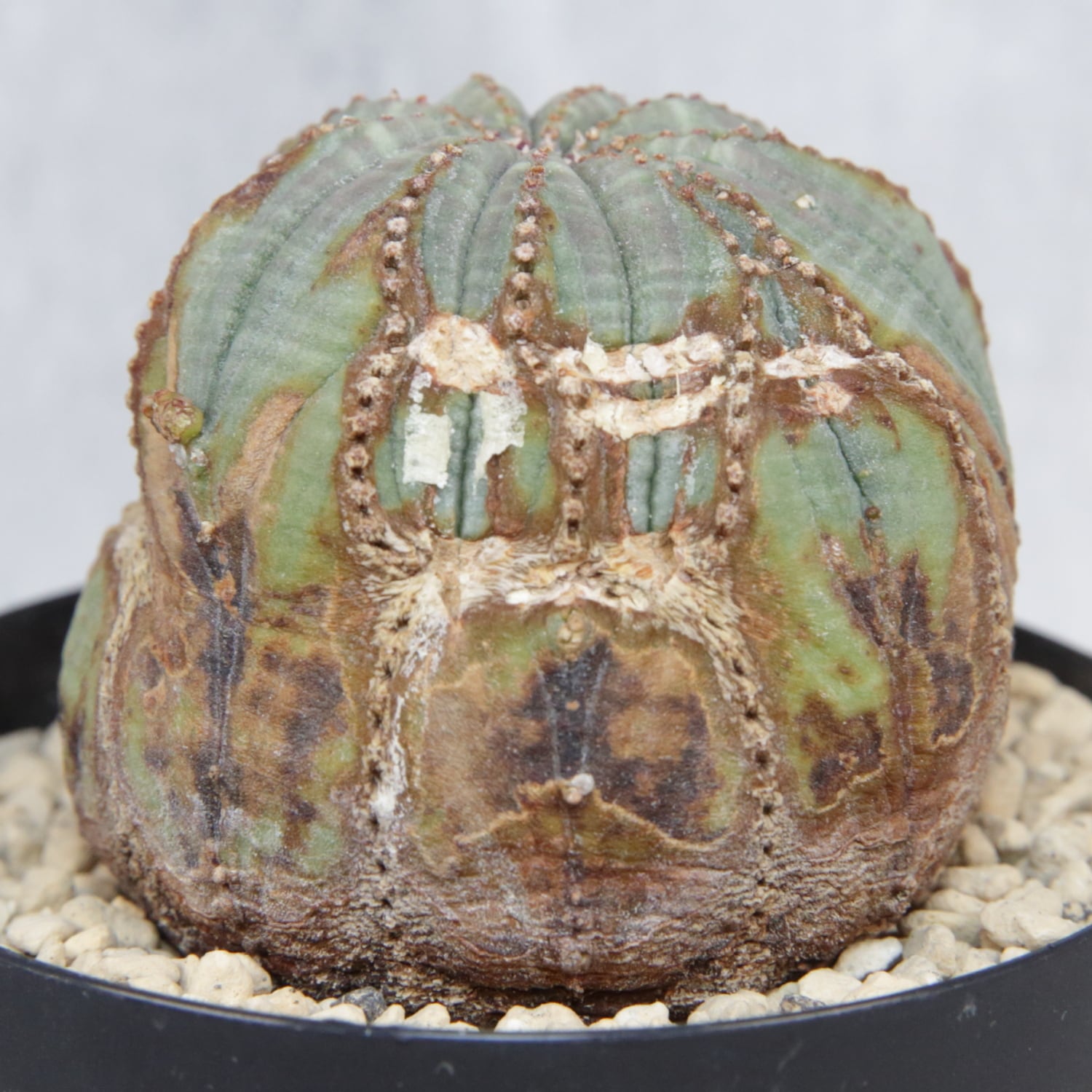 This plant shows an irregular twisted growth pattern developed over time, creating distorted rib lines and an unconventional silhouette.