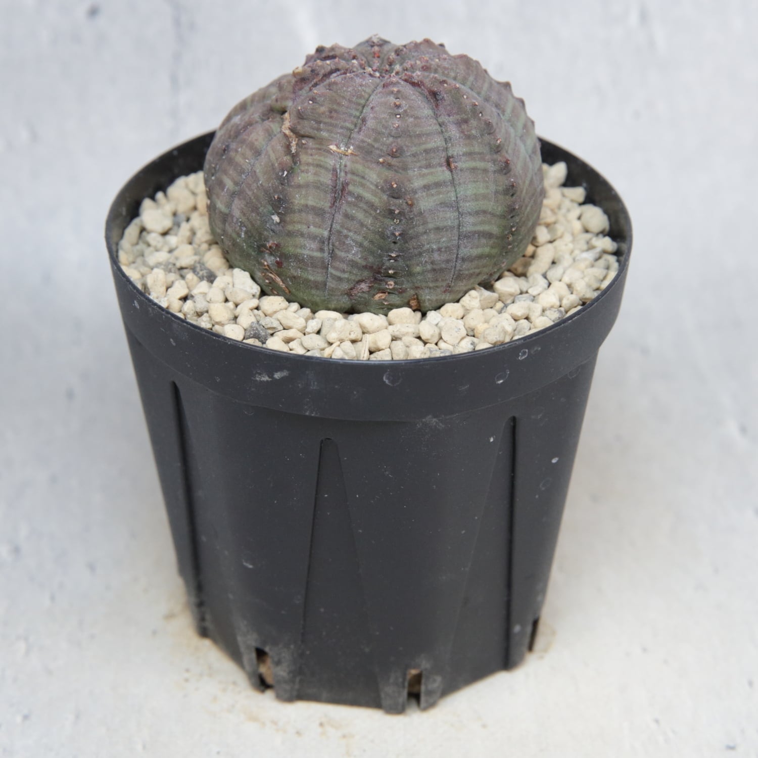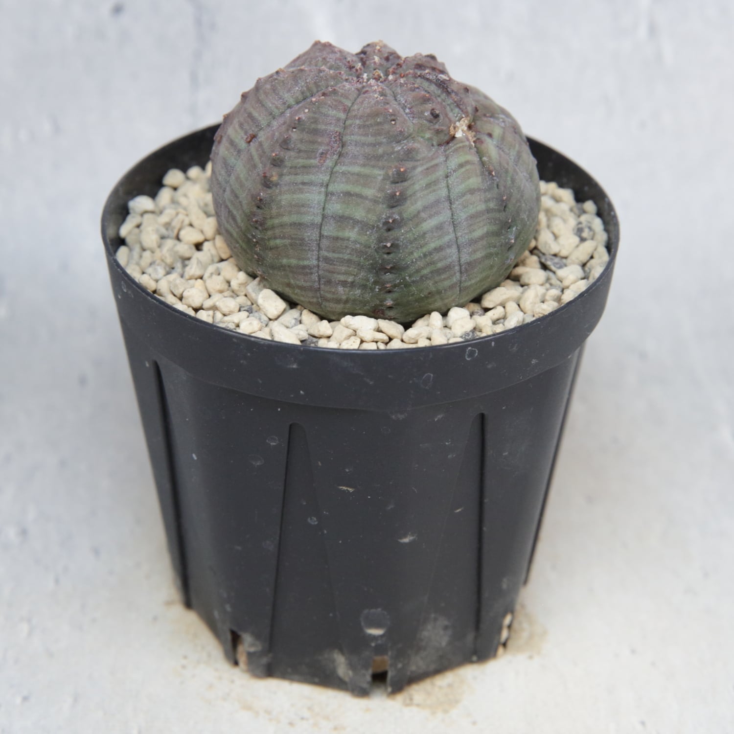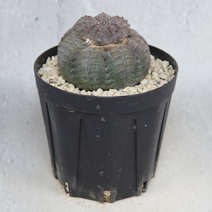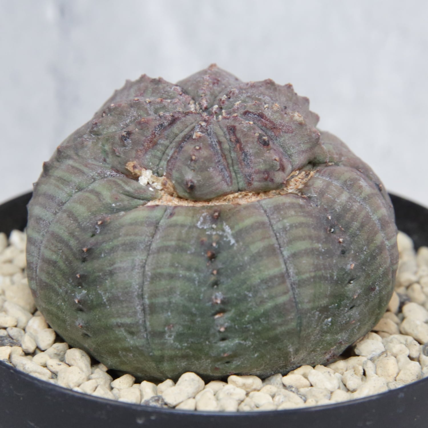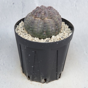 A micro-sized Euphorbia obesa showing both monstrose growth and twisting form.