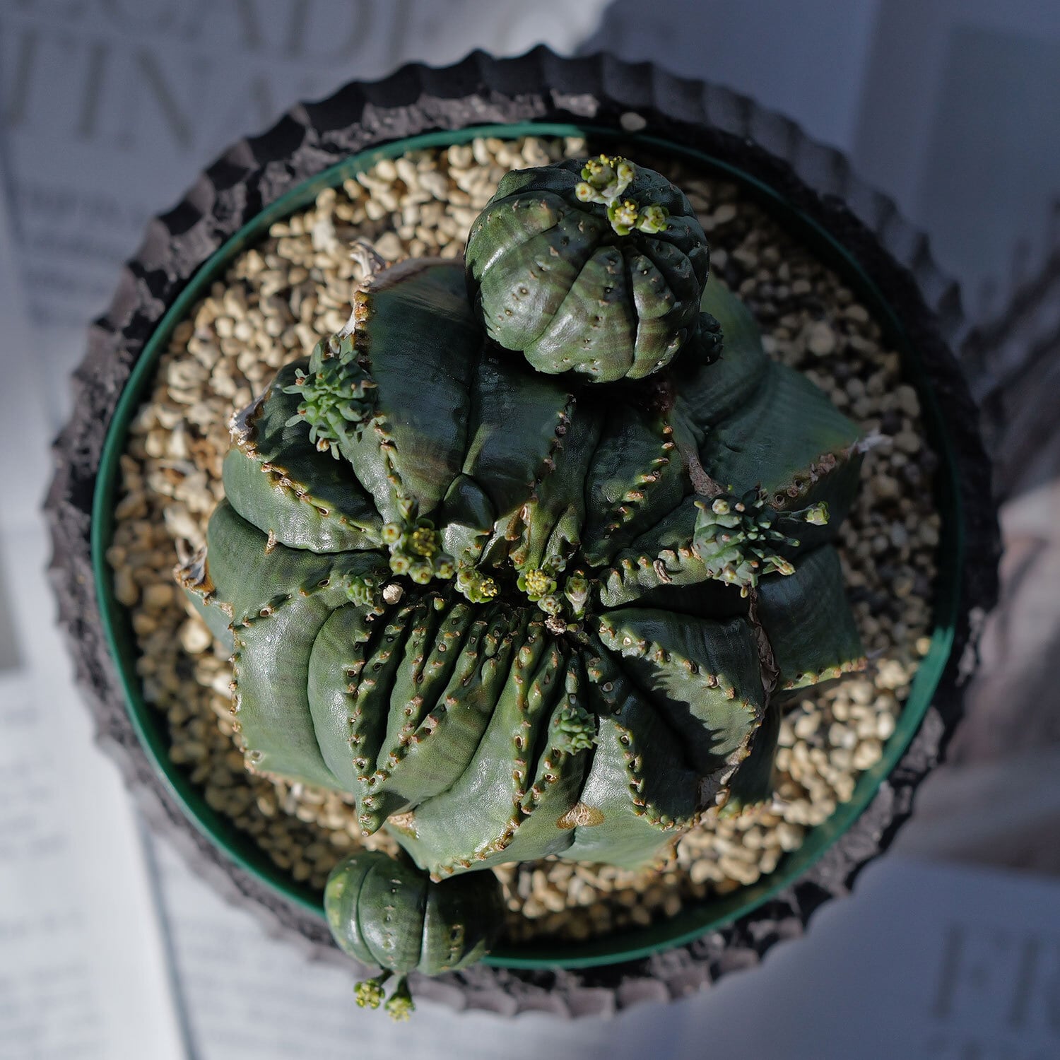 オス株【超厳選株】超大株 最大幅 約11cm 白木 仔吹き 捻じれ 綴化 オベサ / ユーフォルビア