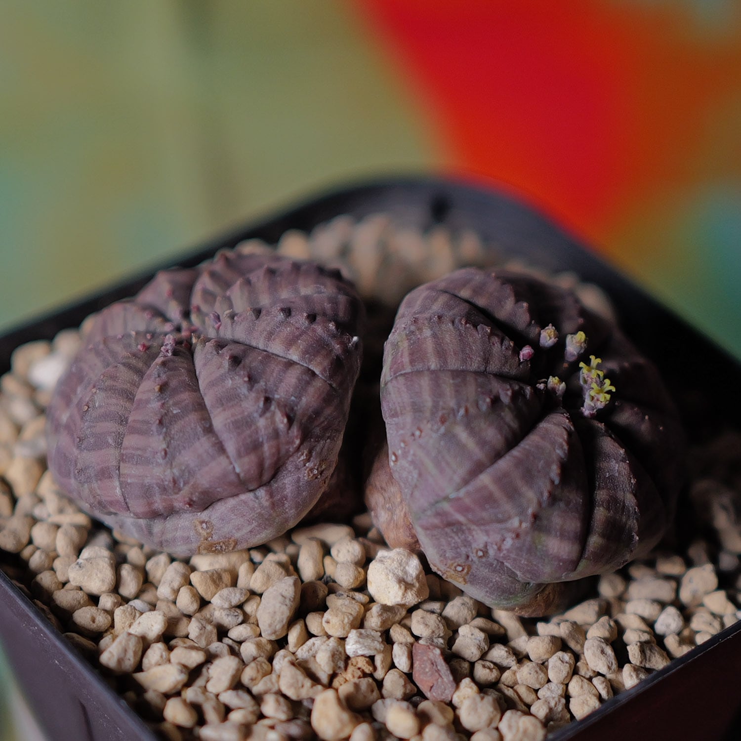 極端なまでに扁平化したボディが、一般的な球体オベサとは明確に異なる印象を与えます。