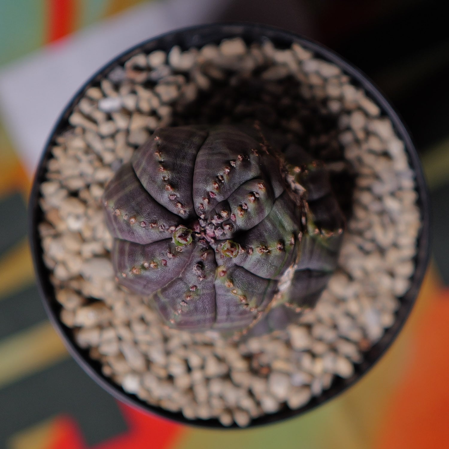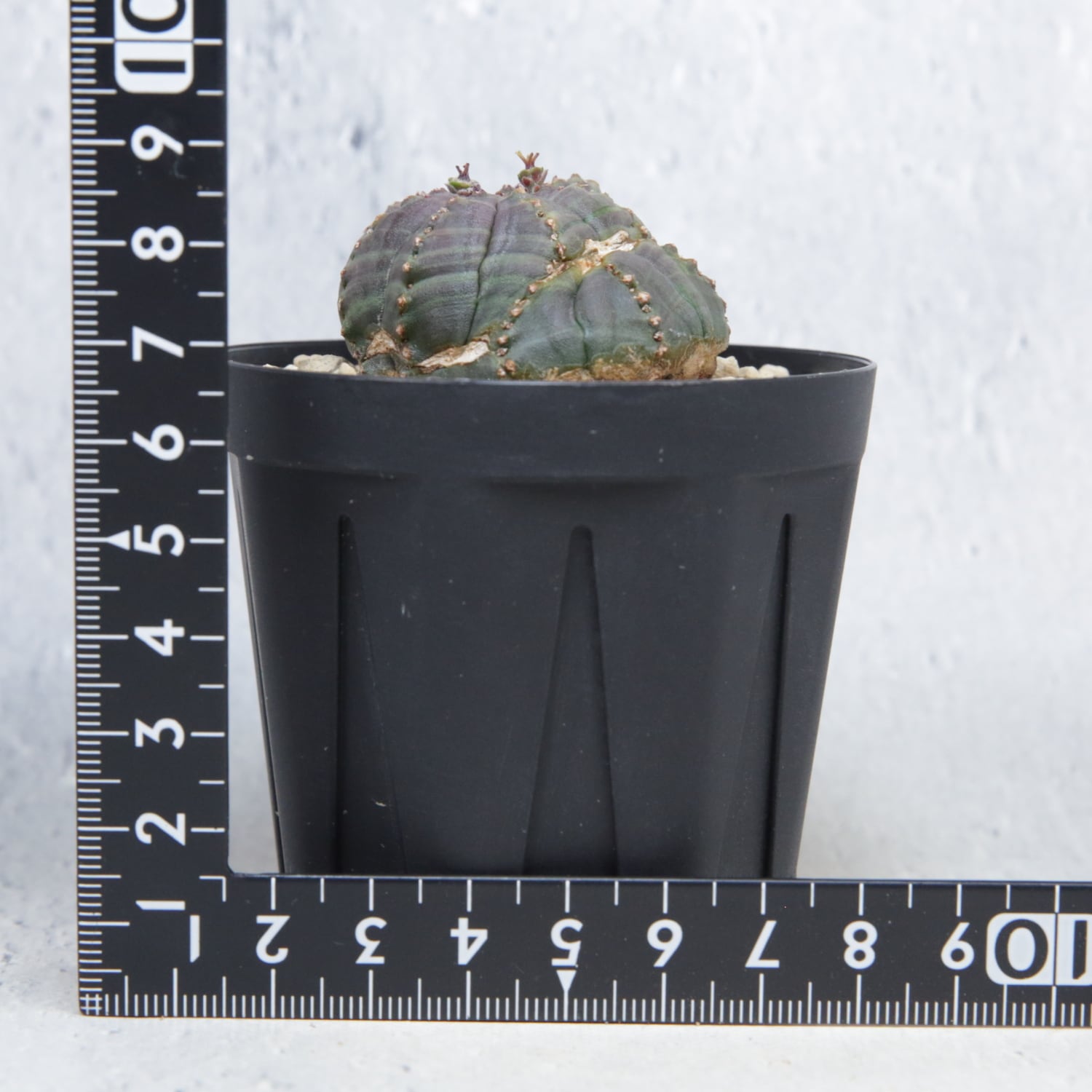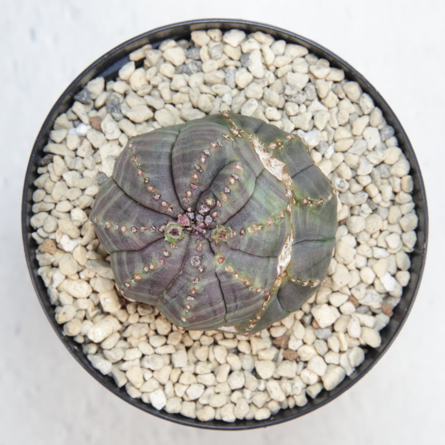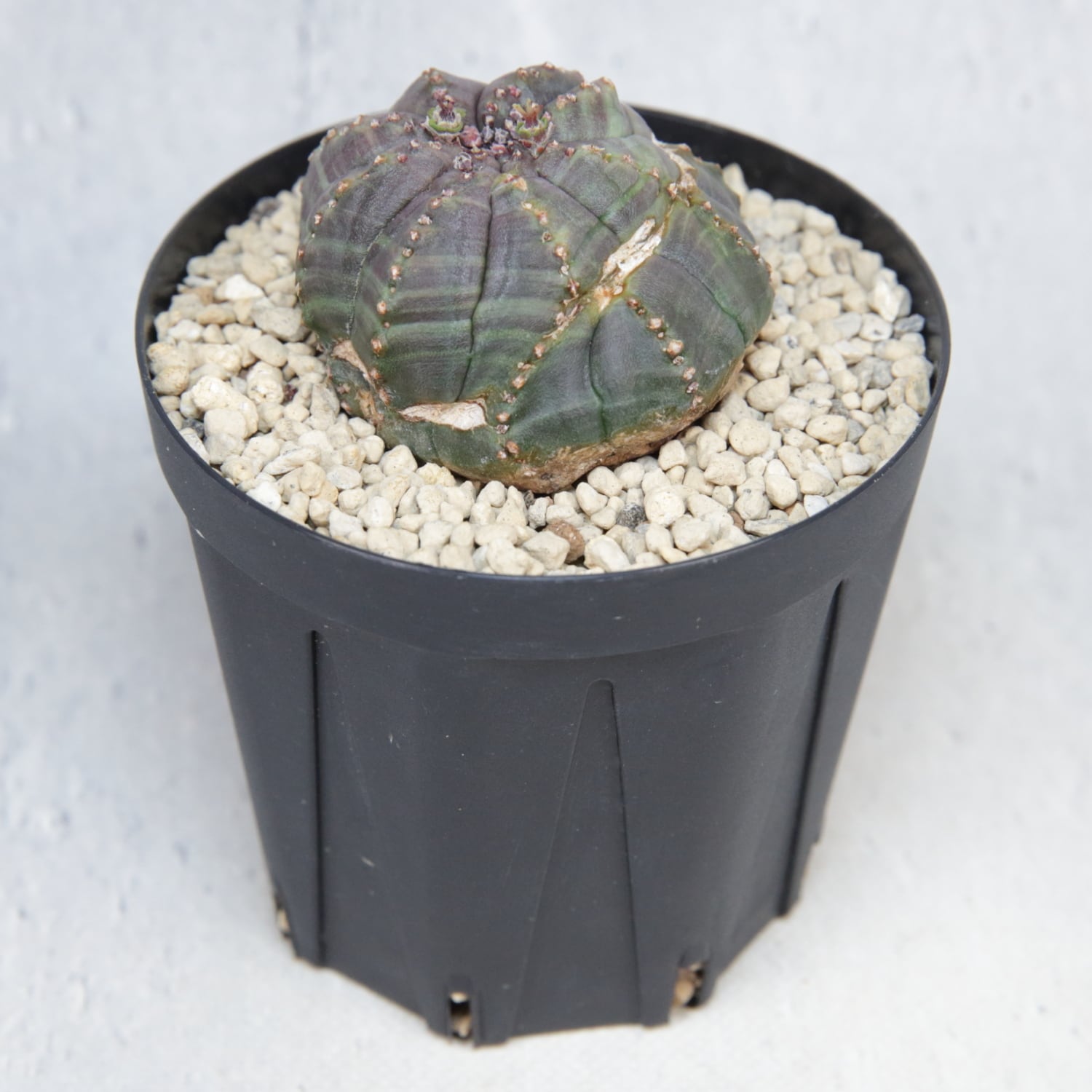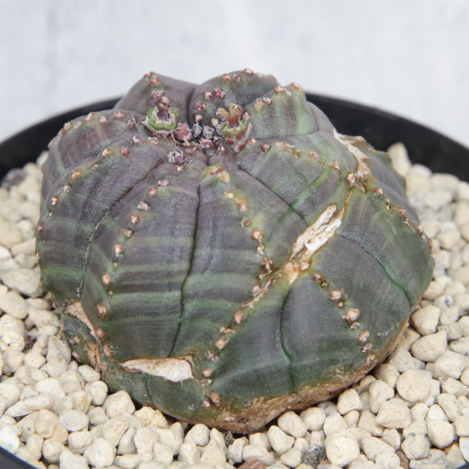 紫を帯びた肌色と、稜沿いに並ぶ粒状の節。