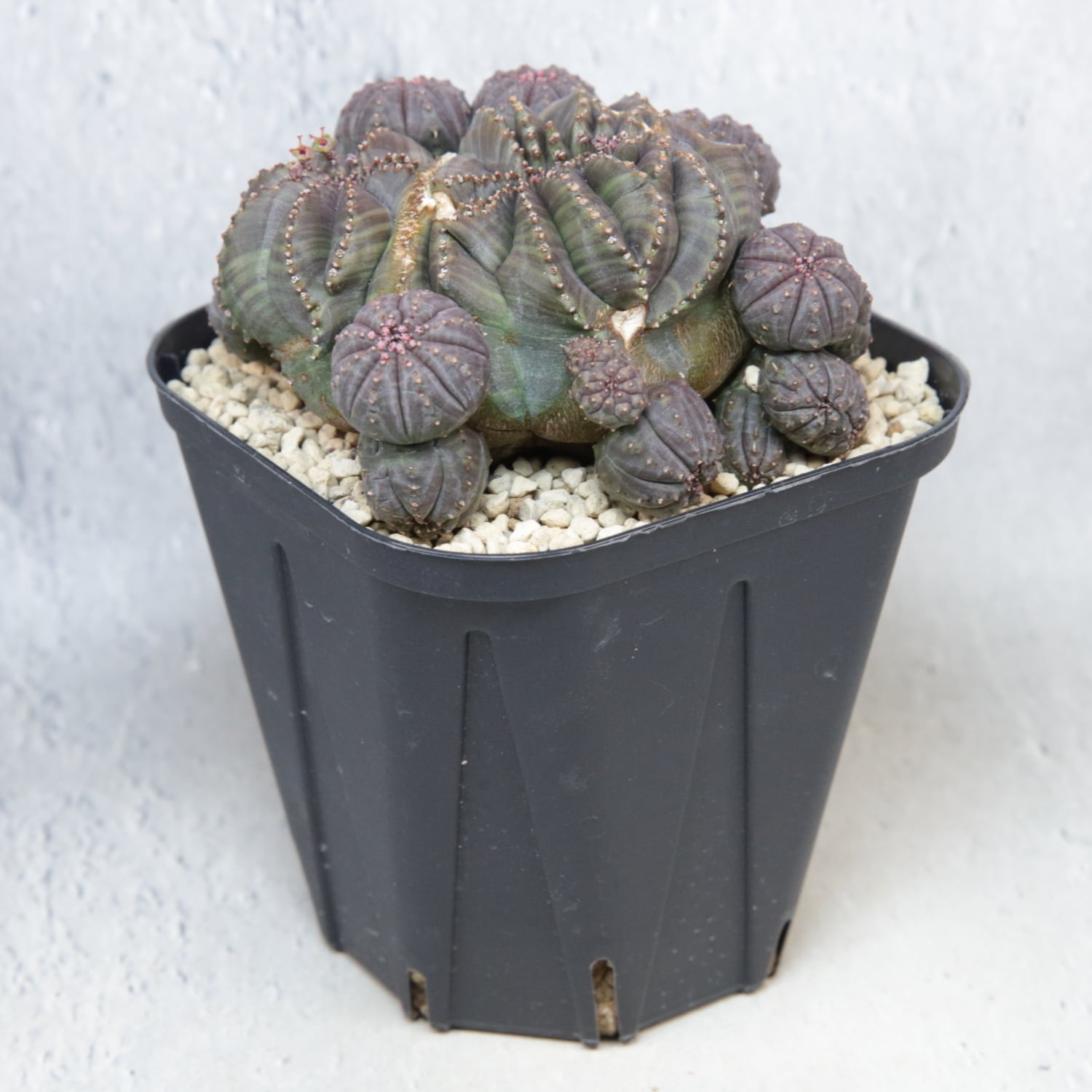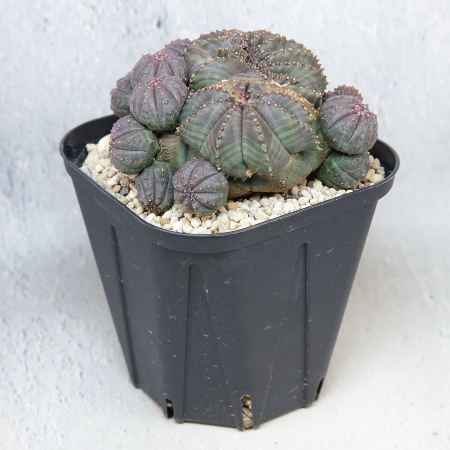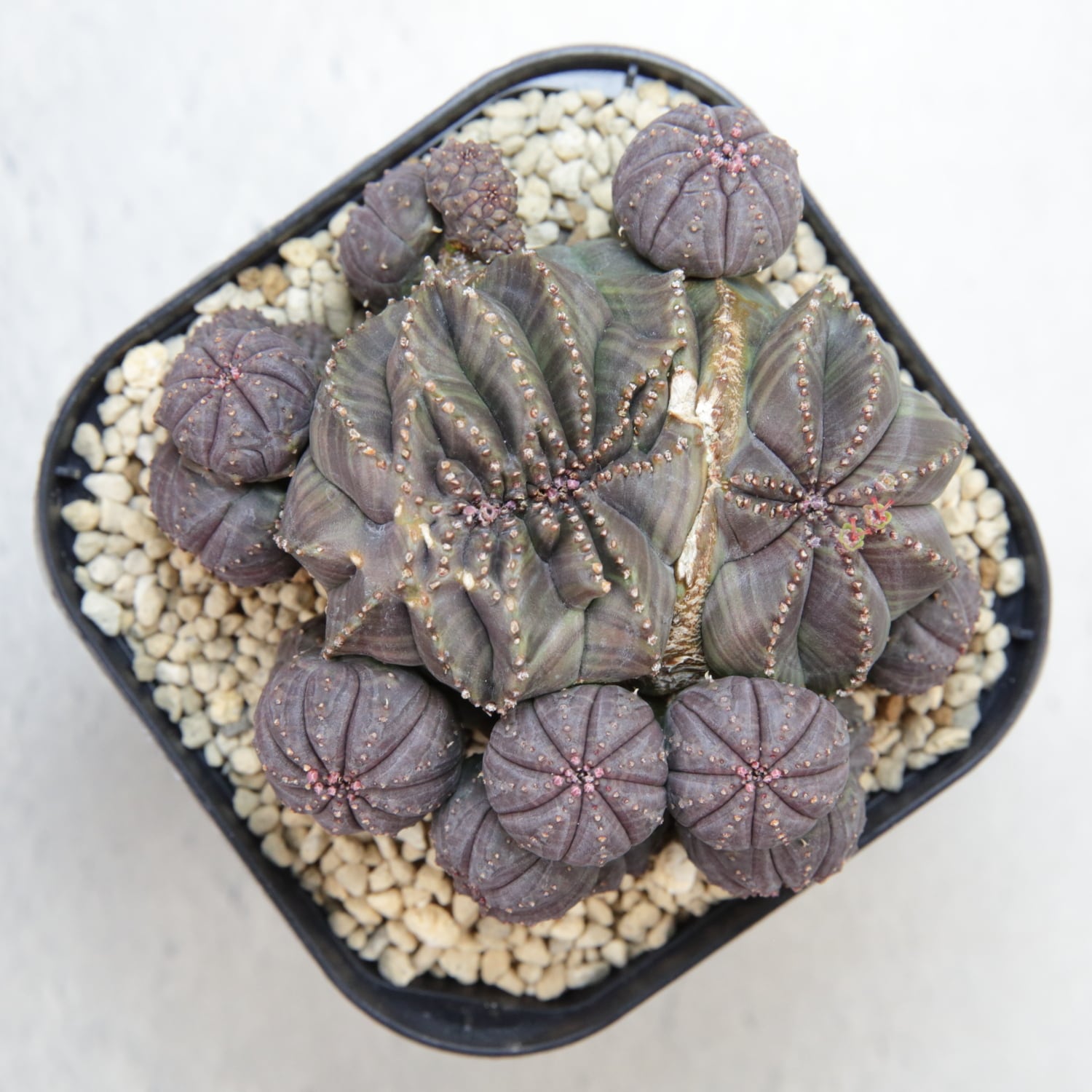 The parent plant measures approximately 8 cm at its widest point and produces numerous offsets around the base.