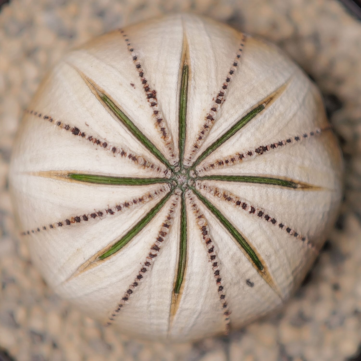 This is a very rare white Euphorbia obesa with evenly whitened ribs.