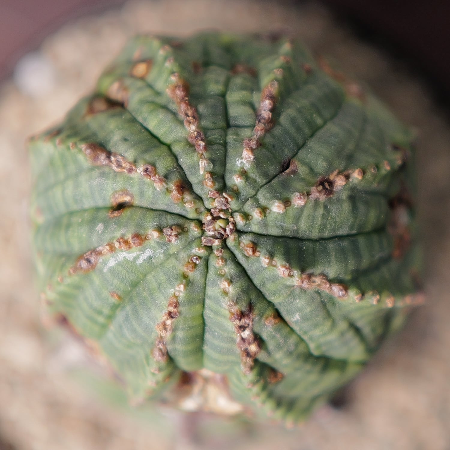 マウンテン状に立ち上がるシルエットに、全体へゆるやかな捻じれが加わった一株です。